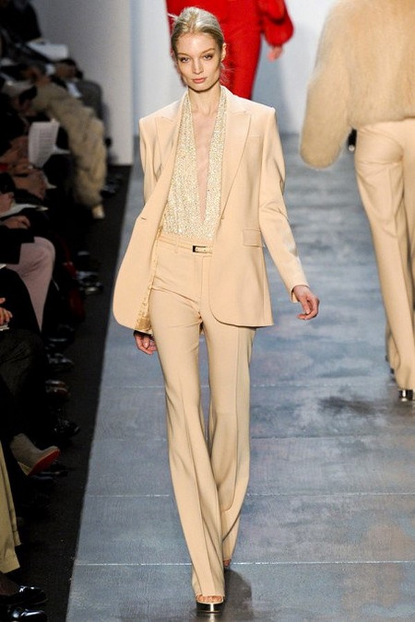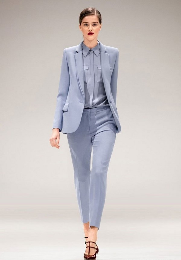 Les pantalons de différents modèles font partie intégrante des ensembles professionnels à la mode. La plupart du temps, ils sont droits, avec ou sans flèche, ainsi que des pantalons légèrement évasés ou légèrement rétrécis pour le bureau.