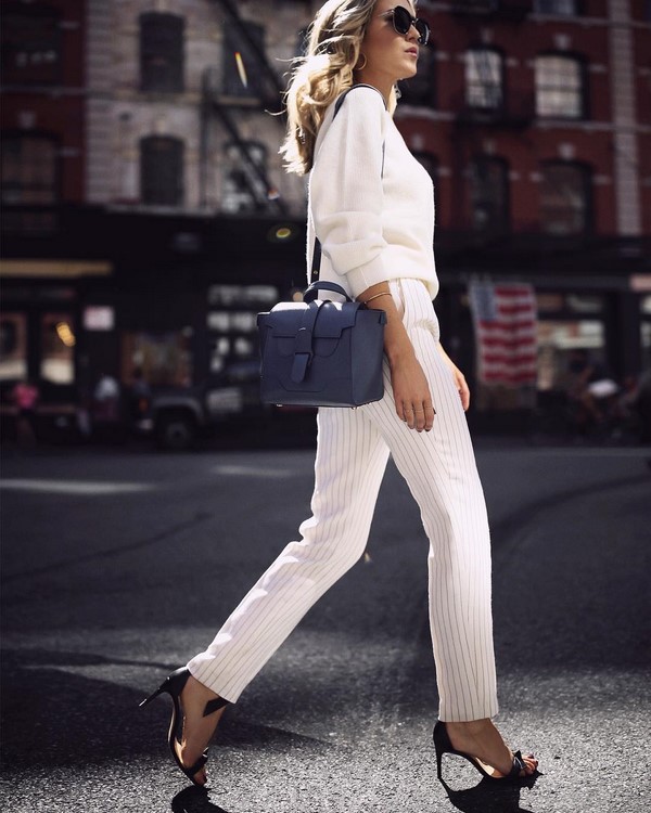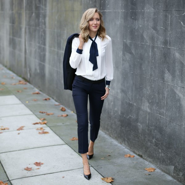 Les stylistes proposent aux dames de compléter les pantalons de mode avec les bateaux classiques, ainsi que les élégantes chaussures oxford ou autres chaussures à talon plat, ainsi que de récupérer un sac à main exquis qui complétera une tenue professionnelle à la mode.