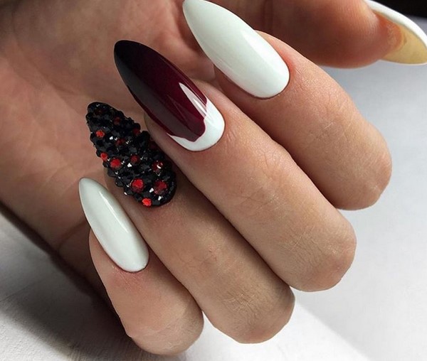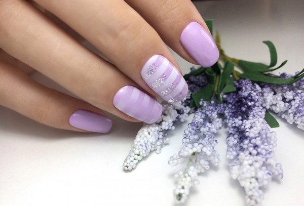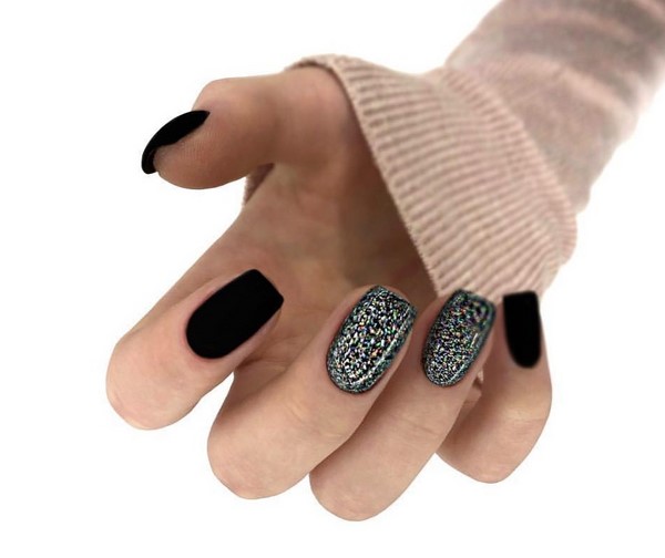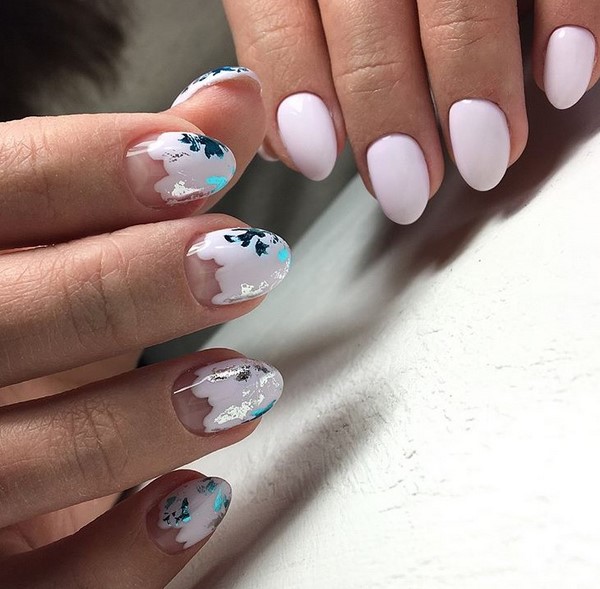 Pour une soirée et un événement spécial, vous pouvez choisir un branché vernis à ongles manucure avec strass, particules de paillettes, cristaux de mica et de lutin, morceaux de feuille ou kamifubuki brillant et spectaculaire, qui dans la conception en gel gel seront très étonnants et élégants.