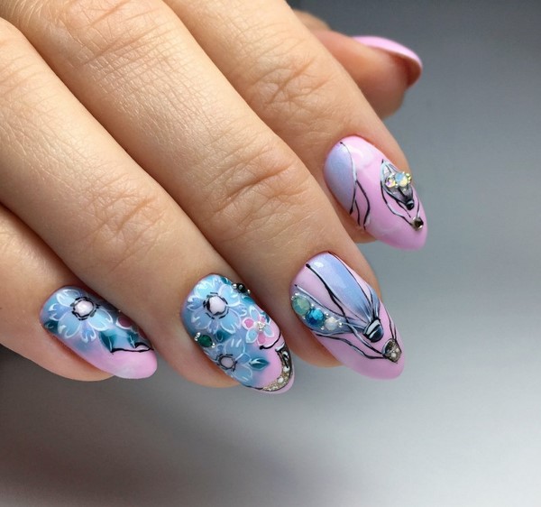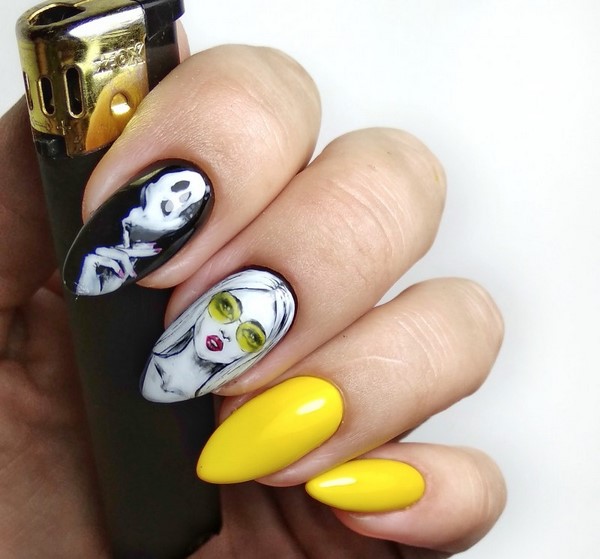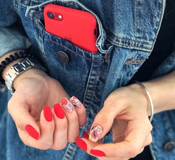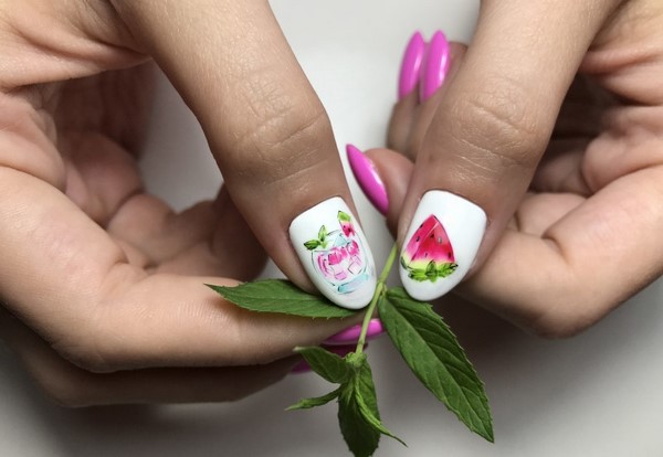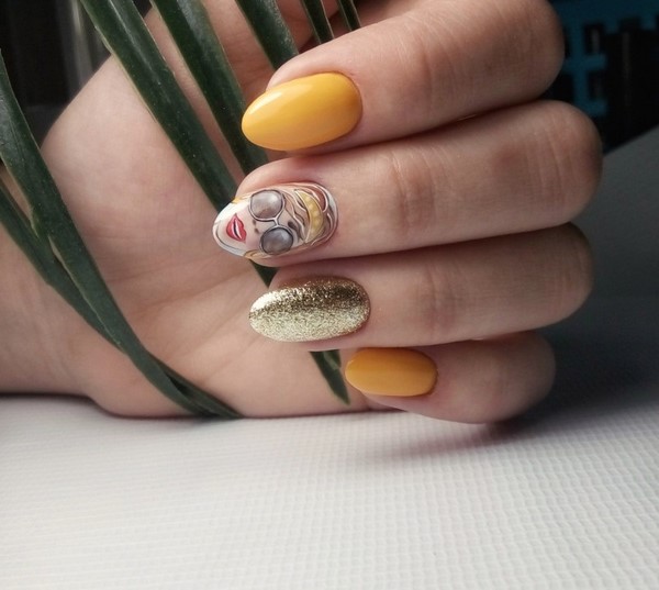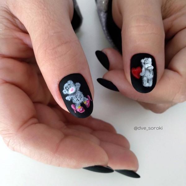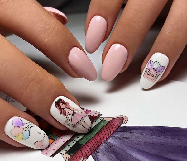 Pour les jeunes filles qui s'ennuient du design avec les solutions habituelles de design pour les ongles, nous suggérons de faire attention au design combinant tendance du vernis à ongles avec gel, gel pour manucure avec des images amusantes de la saison 2025-2026.