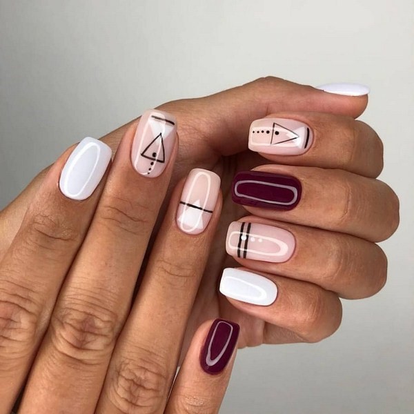 Le laconisme dans la tendance du design des ongles et la preuve en sera le vernis à gel pour manucure 2025-2026 aux motifs géométriques, qui peut être simple ou complexe, complexe ou restreint. Chaque manucure géométrique Le vernis gel sera une excellente solution pour les femmes d’affaires et les amateurs de graphismes clairs sous forme de lignes et de chiffres sur les doigts dans une manucure à la mode pour vernis gel.