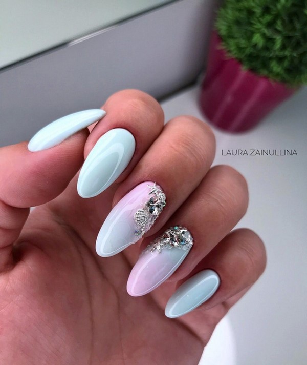 Une brillance incroyable à partir de laquelle vous ne pouvez pas quitter les yeux sera une idée chic pour un polissage gel pour manucure pour la soirée et toutes les célébrations. Miroir, perle, vernis à ongles holographique rendront vos doigts étincelants et exceptionnellement spectaculaires. Le polissage gel à la mode avec vernis se manifeste dans des motifs délicats, mais aussi extravagants, tous incroyablement étonnants.