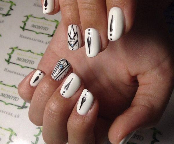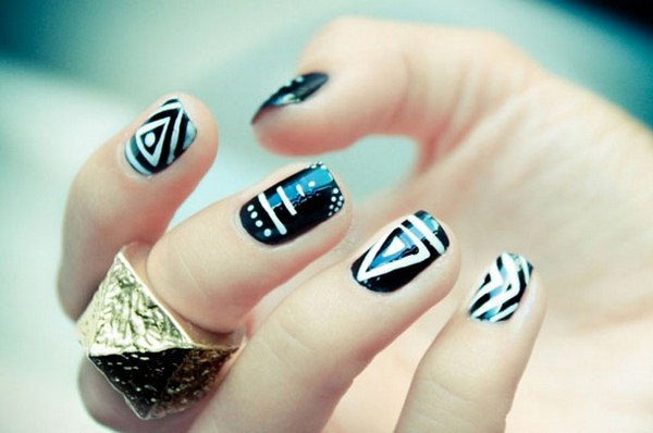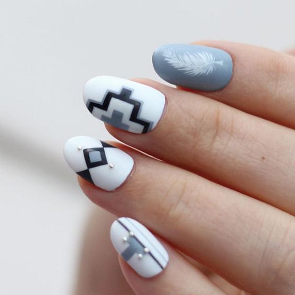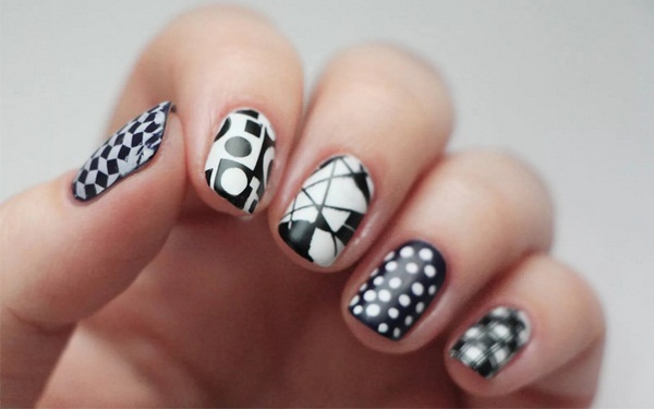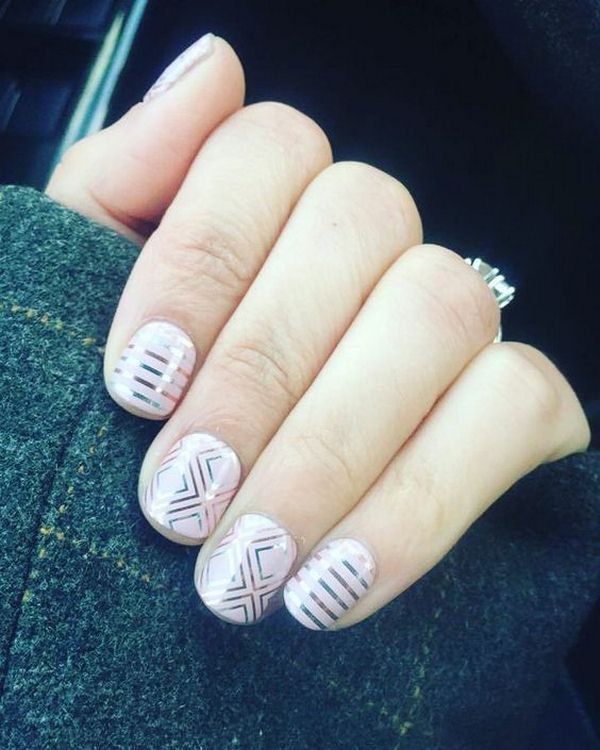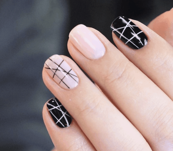 La base de la manucure géométrique est la création de toutes sortes de formes géométriques en utilisant des lignes, des traits, des zigzags et des points, qui peuvent être placés dans n'importe quel ordre ou variation.