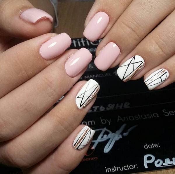 Le minimalisme de manucure géométrique 2025-2026 est d'une simplicité inhabituelle et c'est déjà incroyable. Après tout, une belle nuance de vernis ainsi que des lignes fines dans différentes séquences vous permettront de réaliser un dessin géométrique charmant et élégant dans le style du minimalisme.