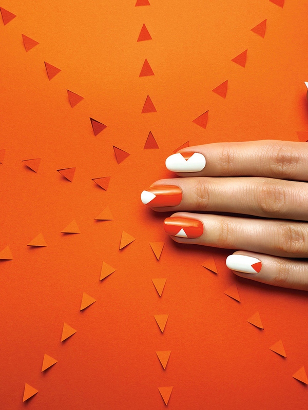 La géométrie des ongles est excellente dans la technique du «color block», lorsque la surface de l’ongle est divisée en différents secteurs, remplis de différentes teintes de vernis.