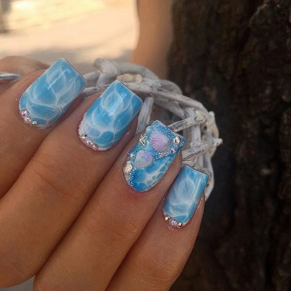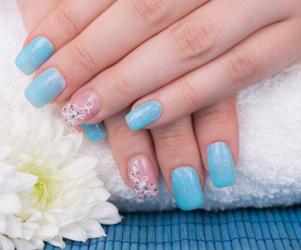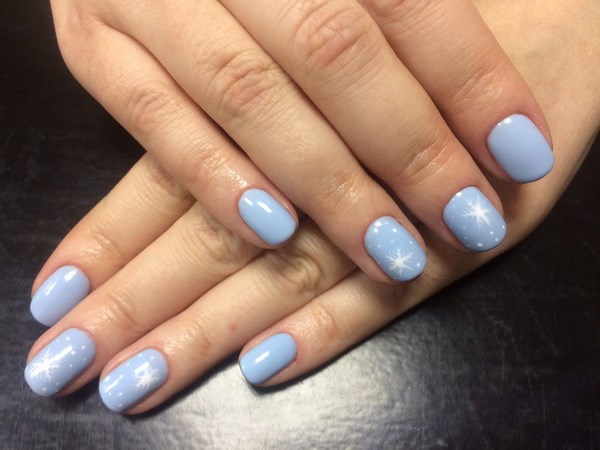 Par exemple, les flocons de neige sont pertinents pour l’hiver, qui décoreront au mieux la manucure bleue, et en été, une manucure bleue à thème marin sera un excellent choix pour des vacances.