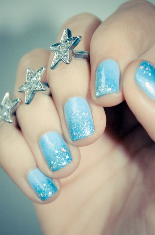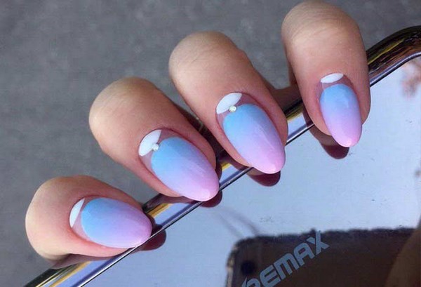 Une manucure bleue créée à l’aide de la technique de l’ombre avec un cadre, une veste bleue, une manucure de lune avec du vernis bleu a un look féminin, qui vaut certainement la peine d’être essayée pour diversifier notre manucure habituelle.