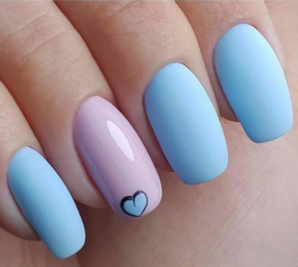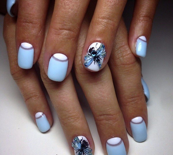 La couleur bleue du vernis semble sans danger dans une finition mate qu'il ne faut pas oublier. Nous vous proposons donc une version intéressante de la manucure bleue avec un vernis mat, complétée par un joli motif et un décor qui séduira les filles charmantes et gentilles.