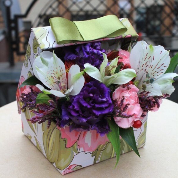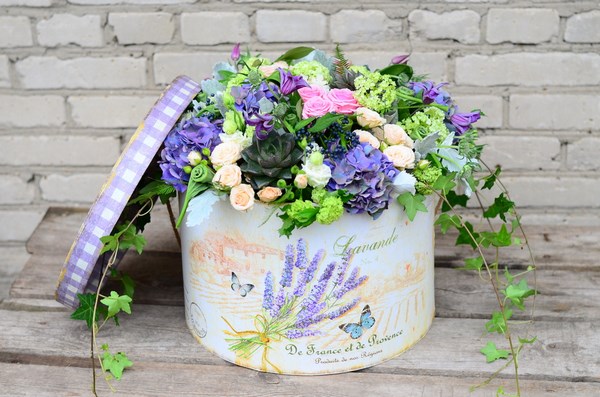 Les meilleurs bouquets de cette saison sont présentés par des fleurs qui sont populaires et tellement communes parmi les amoureux de la beauté - des fleurs dans une boîte à chapeau qui ont l'air extravagant et très beau.
