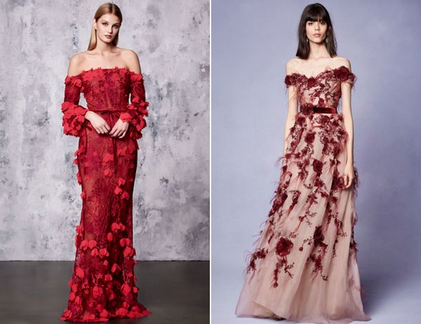 Des robes de bal magnifiques sont présentées chaque année dans des versions monochromes: beige délicat, poudré, rose, pêche, blanc, ainsi que de spectaculaires couleurs rouge et noir.