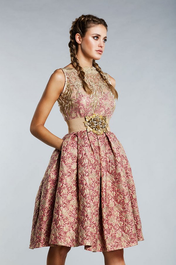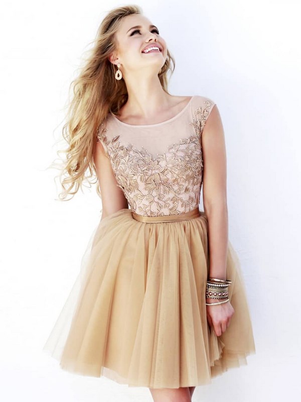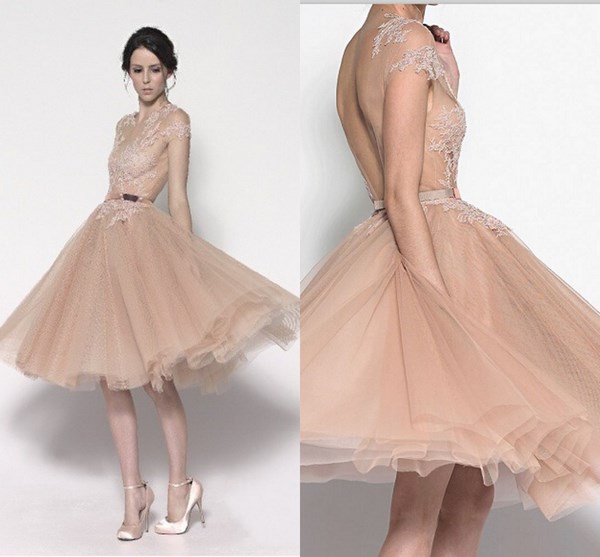 Pour le beau sexe, qui préfèrent une robe courte à la graduation, les créateurs de mode proposent des robes aux genoux ou juste au-dessous des genoux dans le design original.