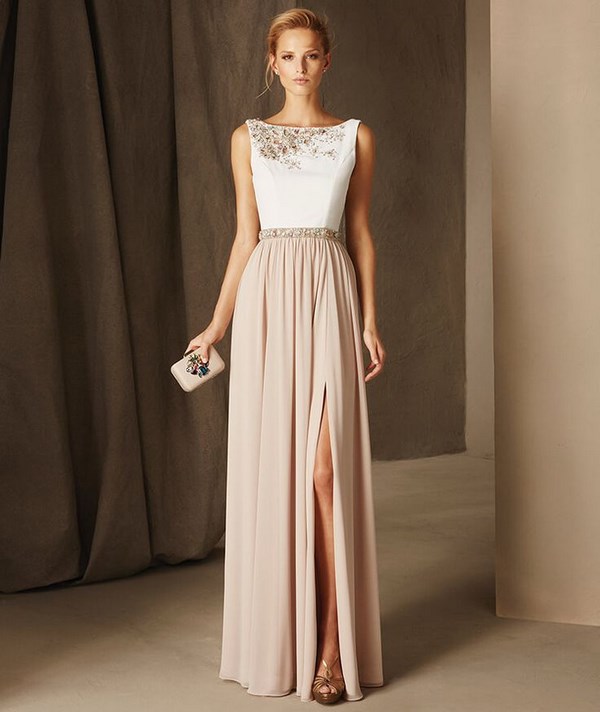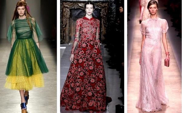 Donc, pour les natures romantiques et douces, il est préférable de faire attention aux robes longues au sol dans une délicate couleur pastel des tissus fluides, complétées par des inserts en d'autres tissus - maille ou dentelle.