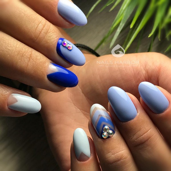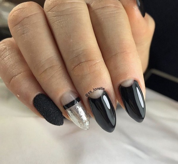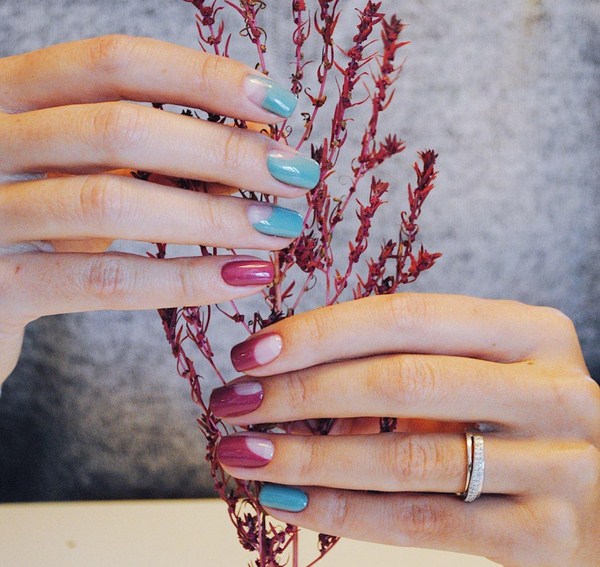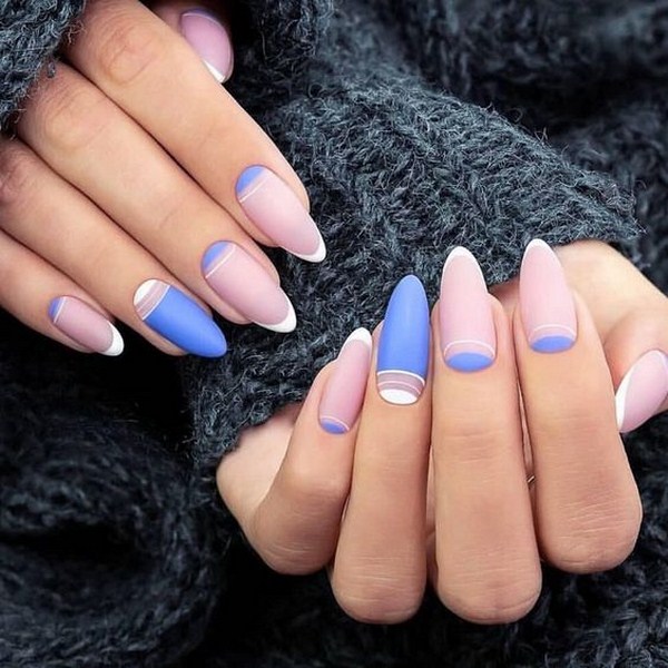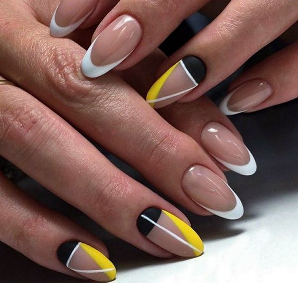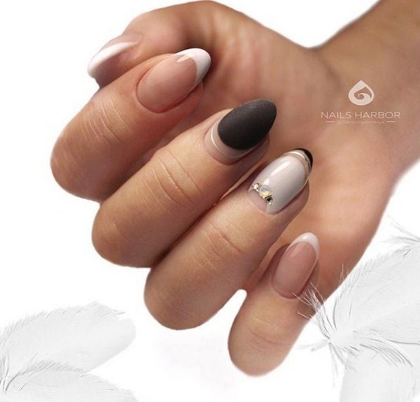 L’harmonie des différents types de français dans une conception de manucure va conquérir tout le monde, surprenant par leur retenue. Manucure ovale, amande ou carré doux sont adorables avec manucure de la lune à la mode et une veste. Dans le même temps, veillez à utiliser plusieurs teintes contrastées et un «espace négatif», qui vous aideront à atteindre la lune ultra-tendance. manucure française.