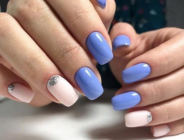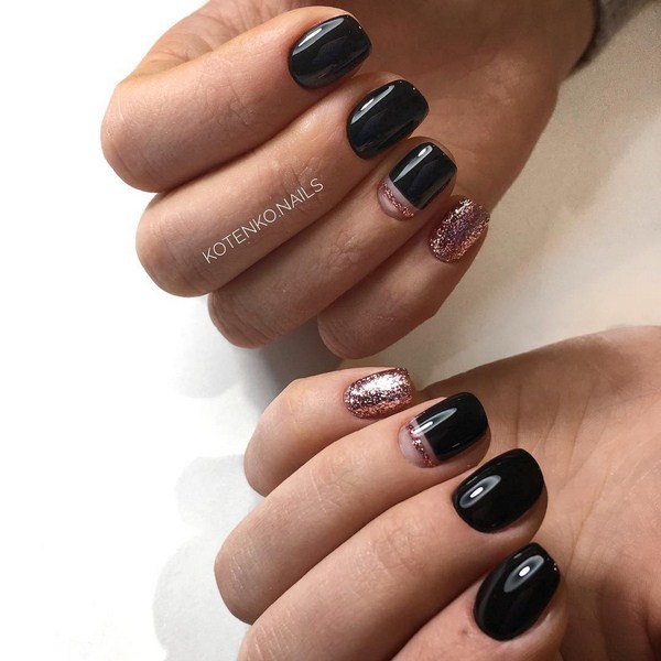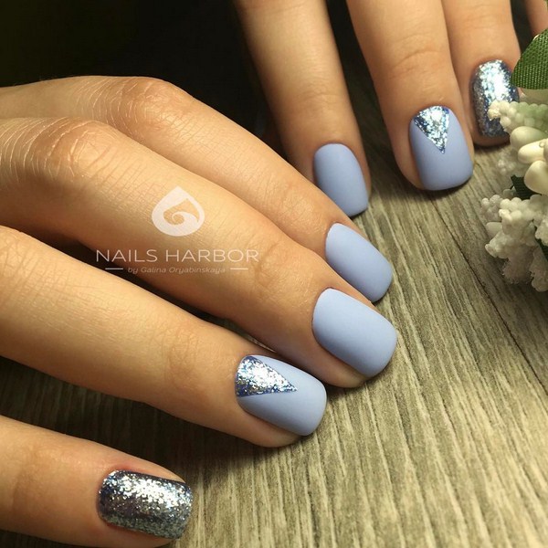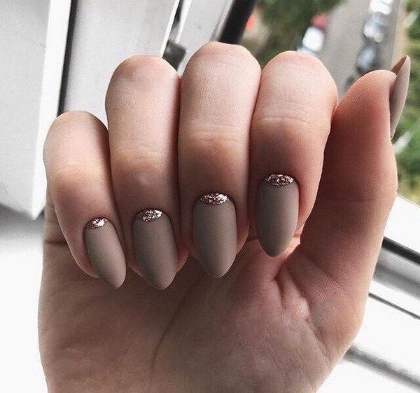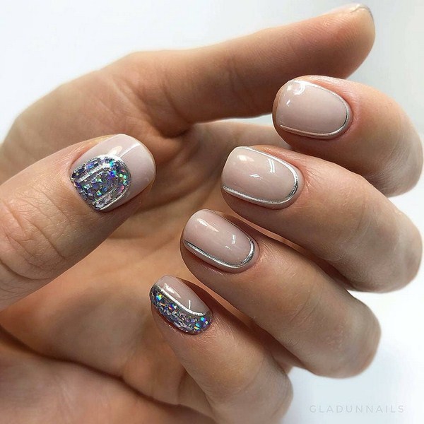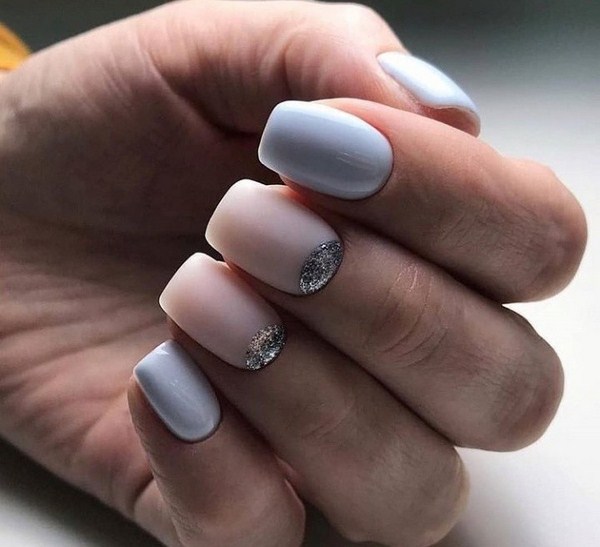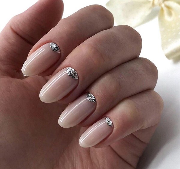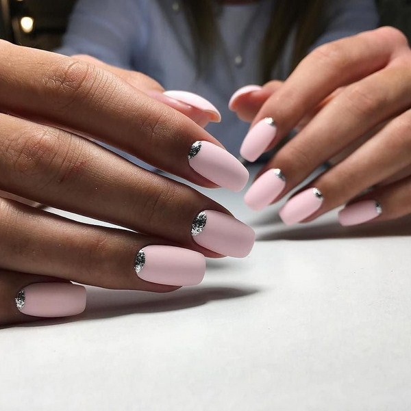 L'effet incomparable de la manucure lunaire vous permettra d'ajouter des étincelles à la lunula. Les puits avec un effet métallique brillant et une base mate des ongles seront à la mode. Vous pouvez créer un bel accent avec une manucure de la lune sur chaque doigt en effectuant des trous triangulaires le long du doigt avec un effet métallique.