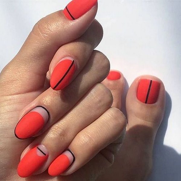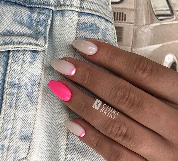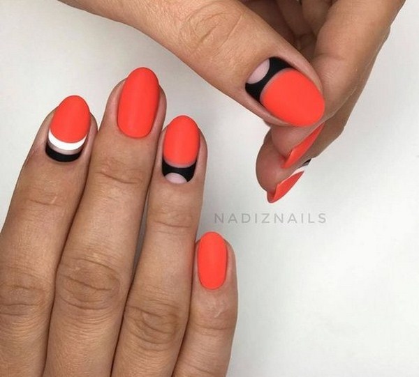 Manucure lunaire à la mode avec allocation créative de lunules sans la technique de l'espace négatif est impensable, ce qui donnera à vos doigts un style extraordinaire et exprimera un goût individuel.Dans ce cas, assurez-vous de choisir une manucure de lune à la mode avec des couleurs vives et des trous contrastés, qui complètent parfaitement "l'espace négatif".