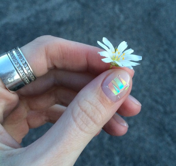 La «manucure à la mode», en verre brisé, est un morceau d’aluminium qui recrée sous le vernis de superbes reflets de différentes couleurs et nuances.