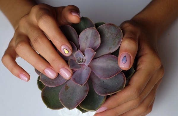 Chaque nouvelle manucure «en verre brisé» est unique et originale à sa manière, ravie par des teintes colorées sur les ongles sous les rayons de lumière.