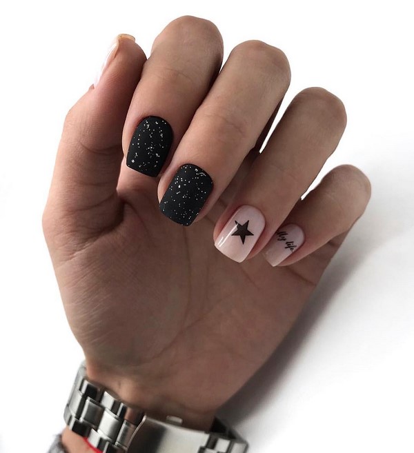 La tendance à la décoration des ongles avec des inscriptions est toujours populaire.En utilisant des inscriptions courtes et courtes sous la forme d'un seul mot, un style sophistiqué de lettres de dessin, ainsi que des «espaces négatifs» et des nuances de couverture agréables et délicates, vous pouvez obtenir une manucure de minimalisme très inhabituelle. Créez un rayon d’inscription de tout sur le pouce en tant qu’accent principal dans une conception minimaliste à la mode des soucis.