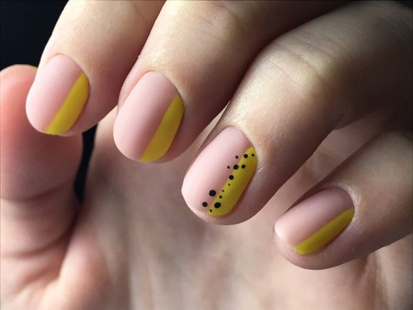 Le nouveau style de manucure, qui s’intègre parfaitement dans le minimalisme des ongles, sera représenté par la technique des "éclaboussures de peinture" ou par l’effet des "oeufs de caille". Une conception intéressante et simple des ongles avec de petits points sur chaque ongle dans différentes nuances peut être complétée par des dessins si vous le souhaitez ou laissée telle quelle.
