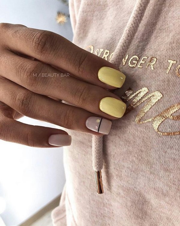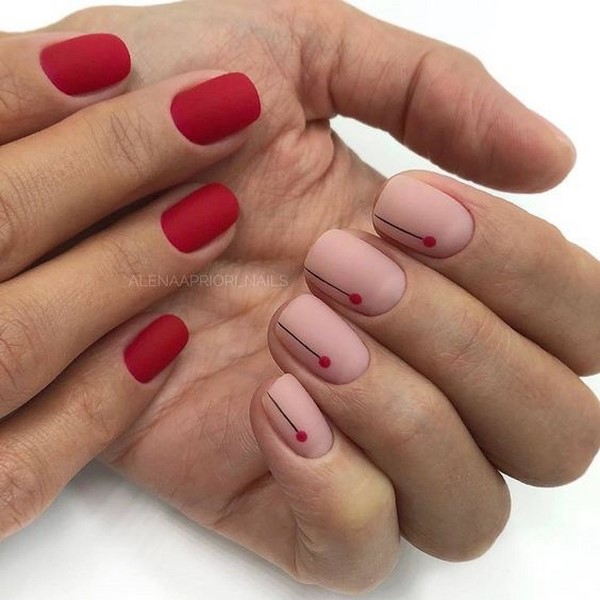 Le favori incontesté de la manucure est le minimalisme, une gamme de nuances de nu qui donne aux ongles un tel look sobre et retenu. Les nouveautés de manucure de minimalisme sont offertes avec des rayures et des points, un "espace négatif" dans une solution mate, ainsi que diverses impressions qui sur un substrat nu seront plus expressives et plus perceptibles.