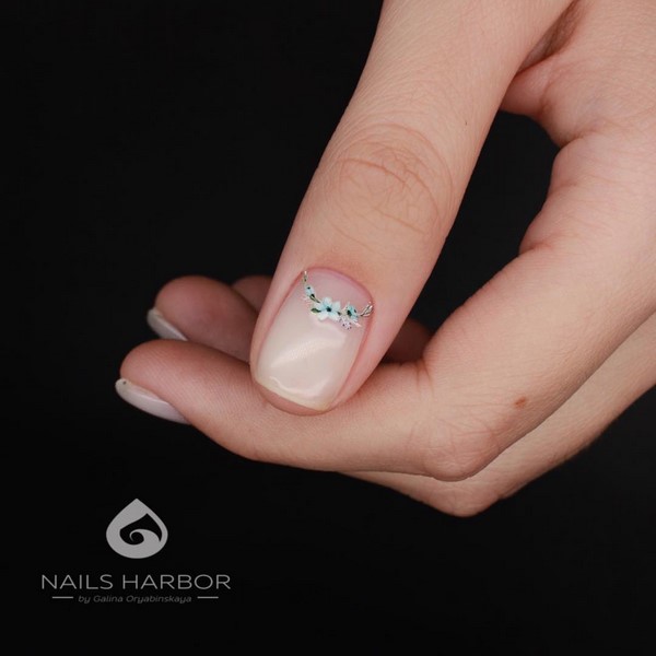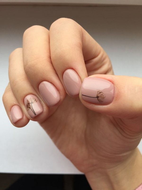Il est permis d’utiliser un frottement de perles dans une manucure à la mode en minimalisme, qui donnera une brillance légère aux ongles. Les motifs floraux discrets sont la tendance principale du design des nail art 2025-2026.