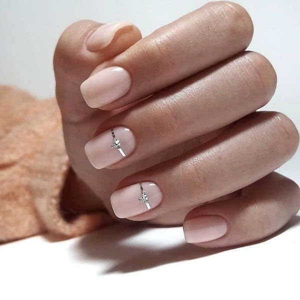 Vous voulez ajouter du charme et de l'élégance au minimalisme à la mode sur vos ongles? N'hésitez pas à le faire, comme nous le montrent les professionnels du service de soins des ongles: de petits strass, des micro-cailloux et une goutte de paillettes ajouteront de la sophistication au design minimaliste des ongles 2025-2026. Une brillance charmante peut être obtenue à l'aide du frottement des perles, ce qui est particulièrement étonnant dans la manucure minimalisme sur les ongles courts.