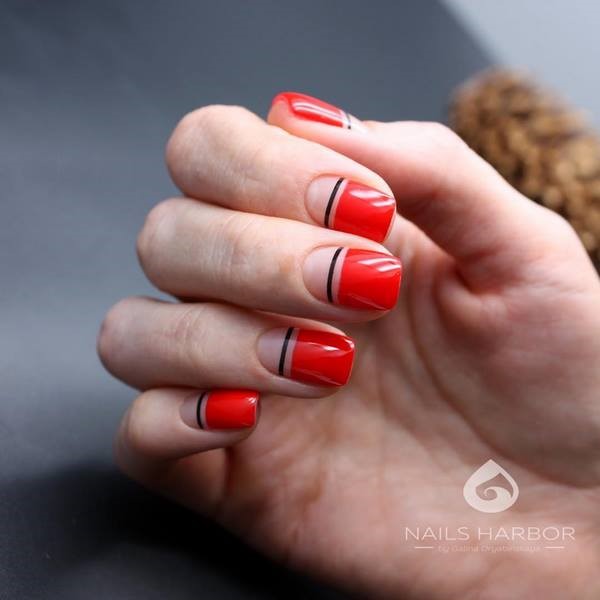Manucure minimalisme à rayures.