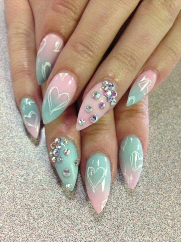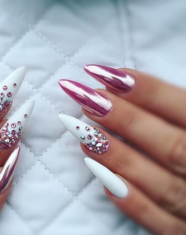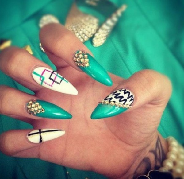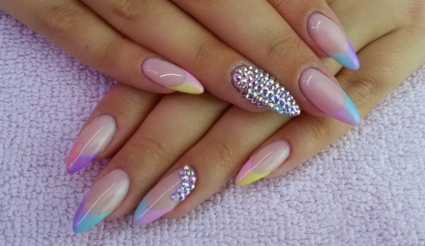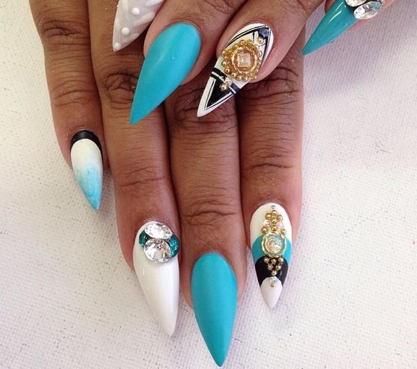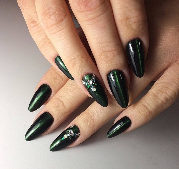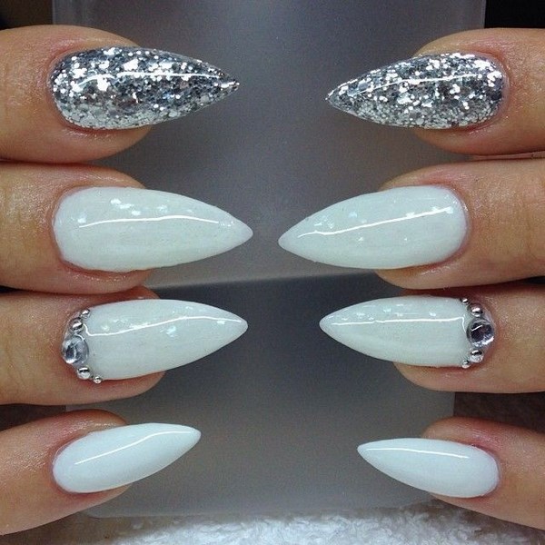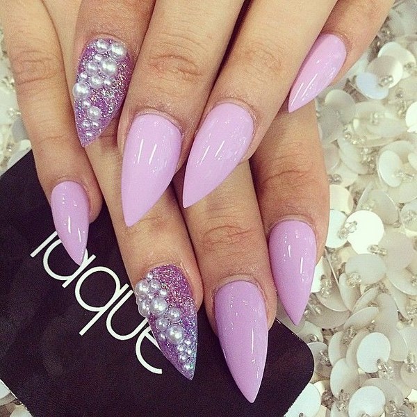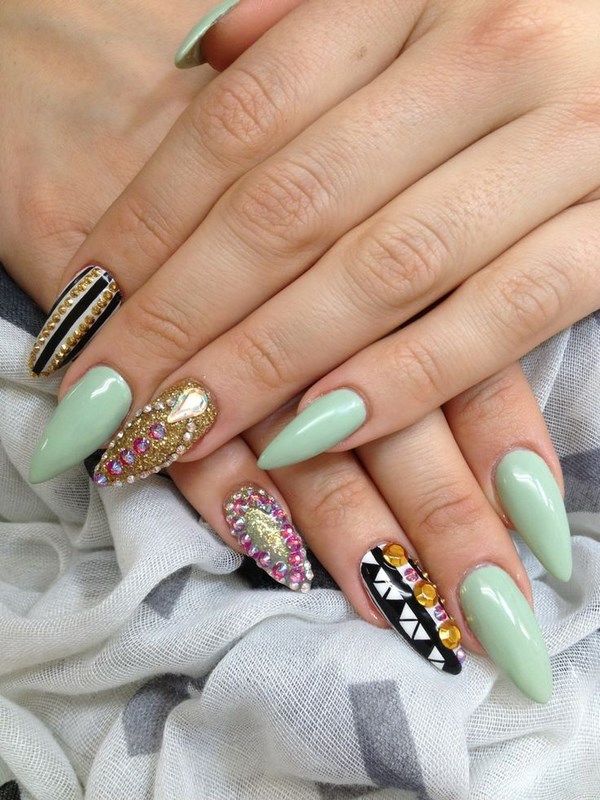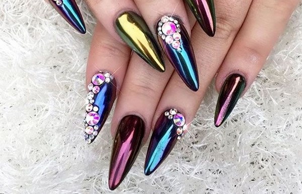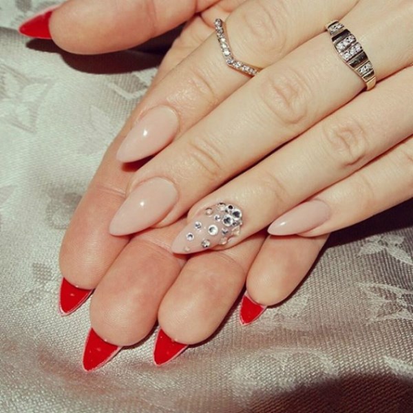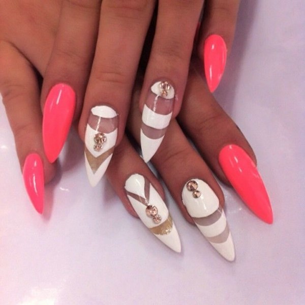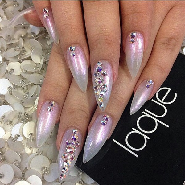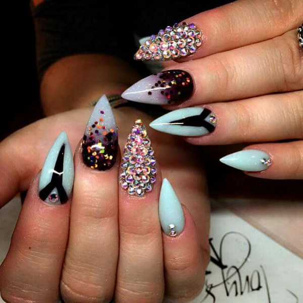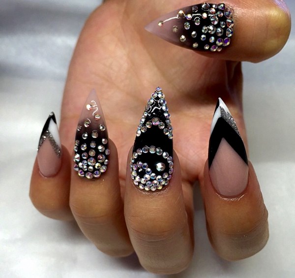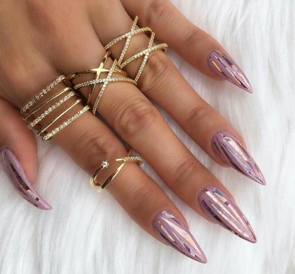 Effectuez une manucure sur des ongles acérés et complétez simultanément plusieurs ongles avec des strass, des rayures, des paillettes, ce qui rendra toute manucure de forme aiguë plus luxueuse et délicieuse.