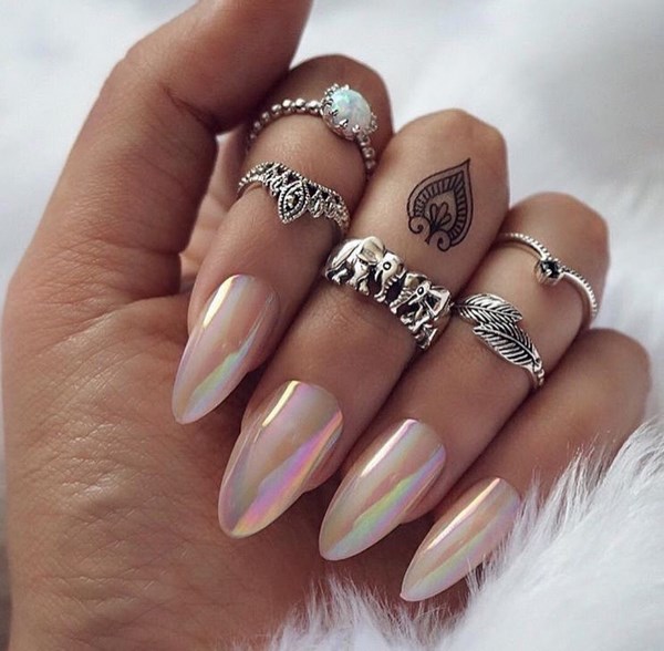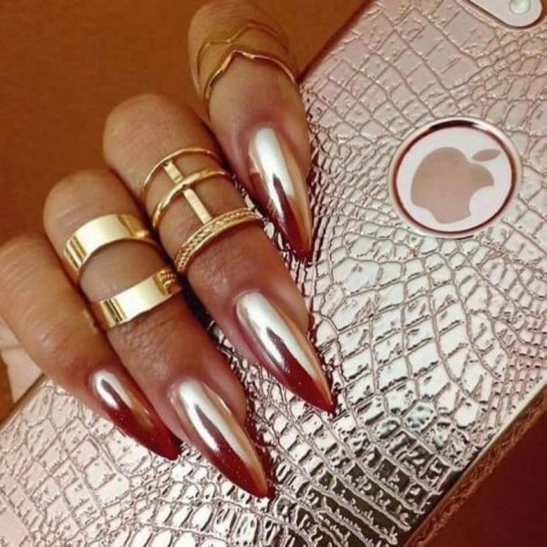 Les ongles pointus peuvent être faits, pas trop longs, ou extrêmement longs et très nets, donnant à la manucure plus d'audace, de sophistication et d'originalité.