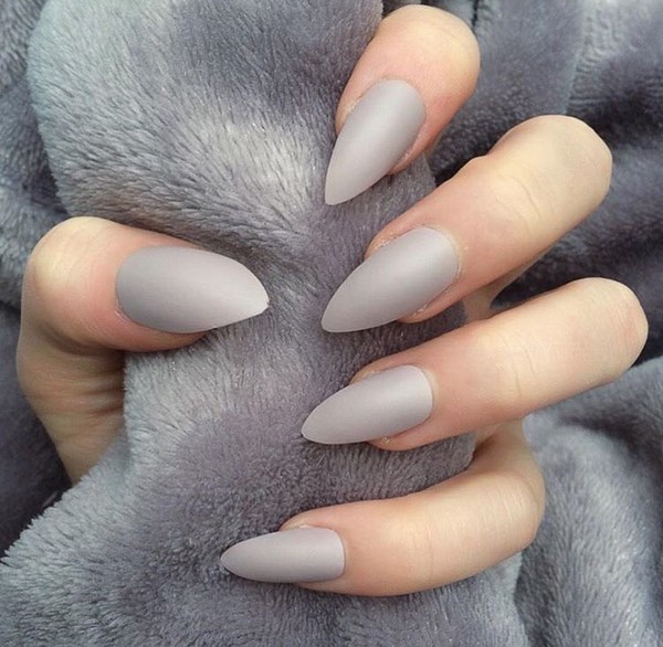La manucure la plus concise et la plus sobre pour les ongles coupants au fini mat, ce qui leur donne un chic et une sophistication particuliers. Pour une manucure douce et sophistiquée sur des ongles pointus, vous pouvez choisir des vernis aux nuances délicates de nu et de pastel, qui sont très beaux sur les ongles pointus.