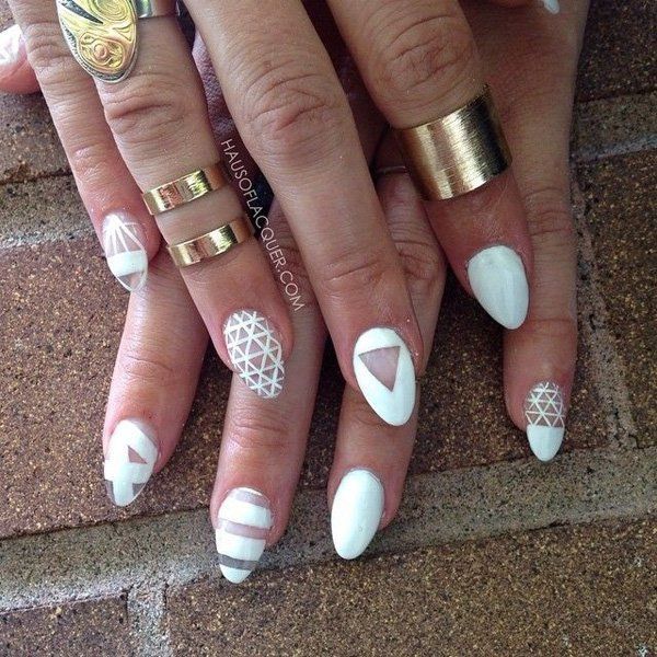 Des options uniques pour créer un «espace négatif» sur les ongles longs sont présentées en blanc et noir, en tons nude et en tons pastel qui aident à mieux révéler la supériorité de ce type de nail art parmi tant d'autres.