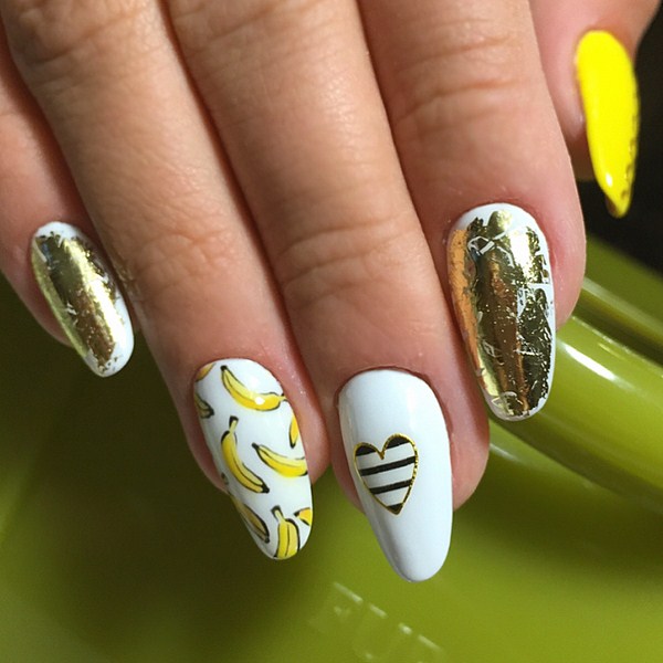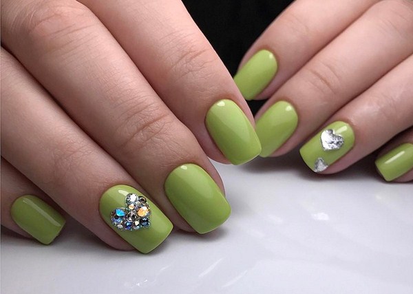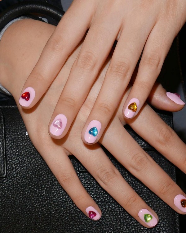 Des ongles avec des cœurs et plus, réalisés selon la technique du minimalisme, des écrans sérigraphiés, incrustés de strass, en solution mate, avec frottement, floc, paillettes et feuille, se révéleront intéressants.