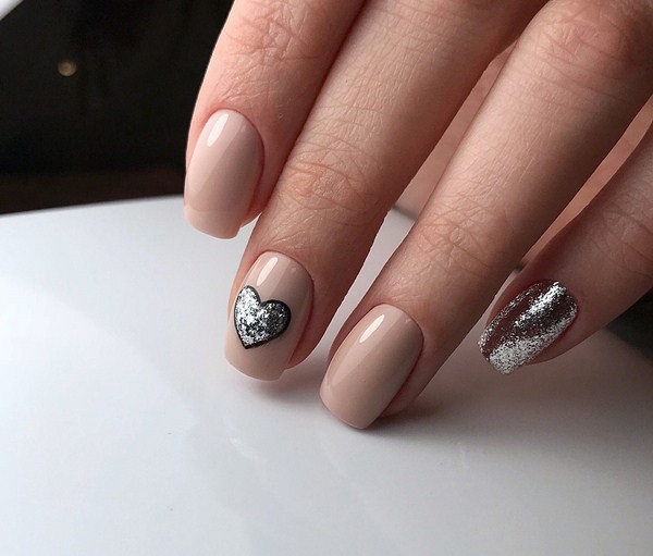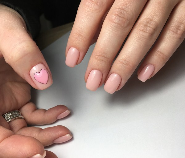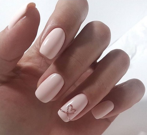 Une manucure cardiaque est belle dans un style minimaliste, vous permettant de porter chaque jour un dessin d’ongle aussi romantique, sans susciter un intérêt excessif pour les ongles. La concision d'une manucure minimaliste avec des cœurs est également fournie par les nuances nues avec des lignes fines et des micro-cœurs en rouge. Minimalisme intéressant et romantique avec des inscriptions sur les ongles, ainsi qu'un décor de paillettes.