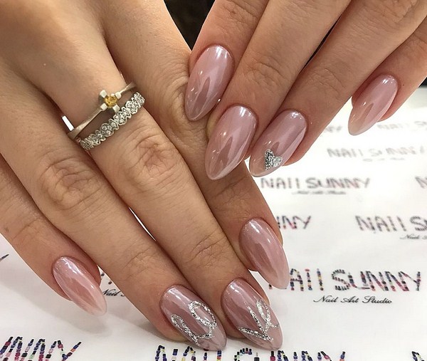 Vous obtiendrez des ongles en velours inhabituels grâce à une poudre spéciale pour les ongles ou les troupeaux. La manucure avec coeurs et flocons sur les ongles a l’air très inhabituel et séduisant, créant une sensation de velours et d’ongles moelleux.