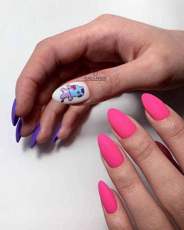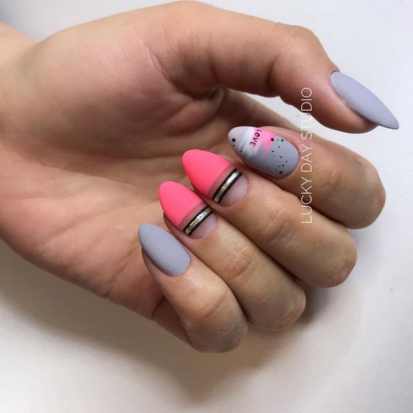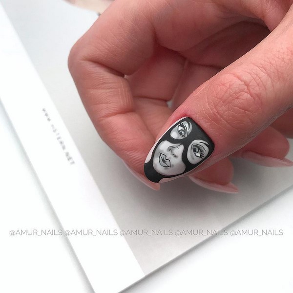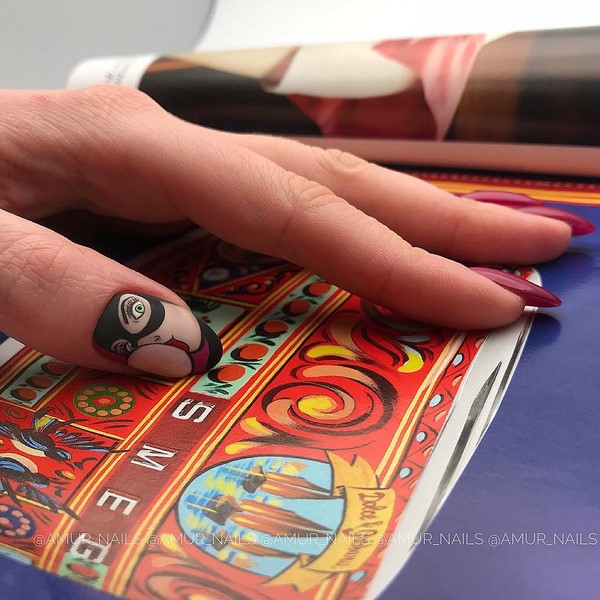 Que dire sur la finition mate de l’une des solutions d’art à ongles les plus populaires est toujours un sujet «ouvert» et pertinent. Comme auparavant, le haut a une manucure mate monochrome chic, mais il est tout simplement impossible de refuser les nouveautés proposées du mat art nail art avec la peinture chic! Essayez le nouveau produit - une manucure mate dans un style pop art avec des portraits lumineux, des lèvres et des dessins audacieux, qui sera la tendance principale du design à la mode des ongles, combinant parfaitement avec la finition mate.
