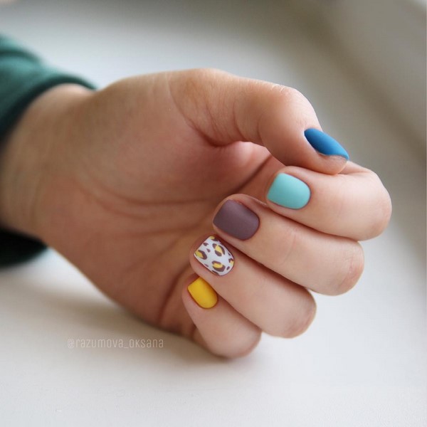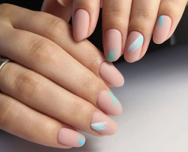 La manucure mate utilisant la technique des «coups de pinceau» sera à la mode, ce qui est la tendance principale dans la conception quotidienne du nail art. Une manucure mate ennuyeuse et originale dans une telle conception peut être très tendre en utilisant des nuances de nu, ou amusante avec différentes nuances de revêtements mats.