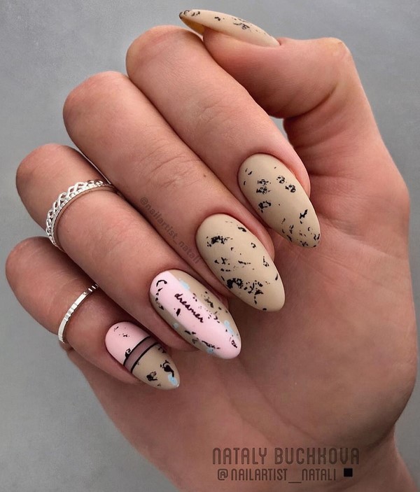 Manucure à effet d'oeuf de caille mat
