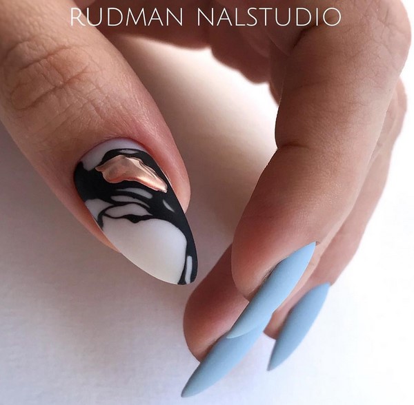 De nombreux artistes de clou ont recours à une réception avec une finition mate sur les ongles, ce qui vous permet d'obtenir un dessin de manucure tendance et efficace sans effort supplémentaire, à la fois dans un style festif et au quotidien.