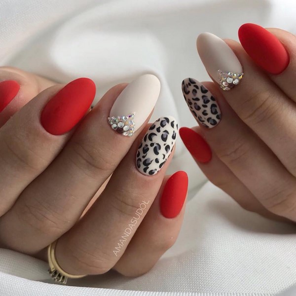 La supériorité de la manucure mate réside également dans le fait qu’elle s’associe parfaitement à divers éléments décoratifs - strass, brillants, kamifubuki et feuille.