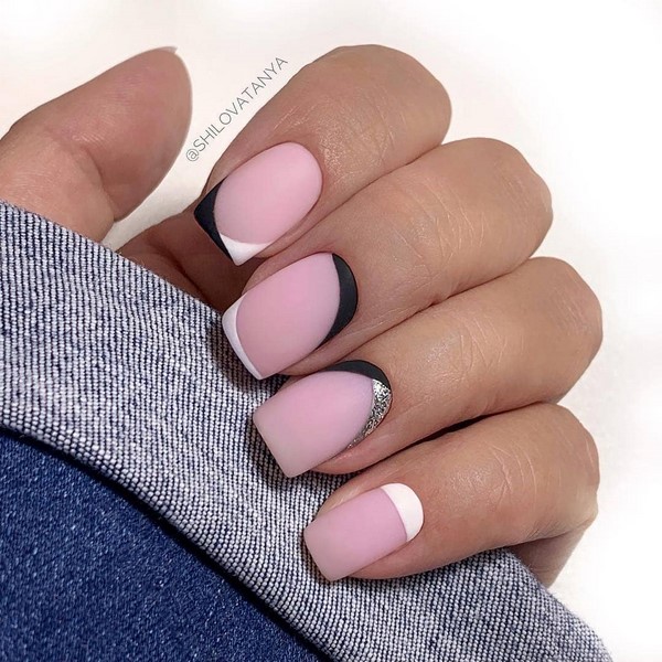 Souhaitant ne pas changer les techniques de manucure traditionnelles, les maîtres incarnent les nouvelles solutions du design français des ongles mats. Des combinaisons de différentes nuances, formes de sourire et lignes dans une manucure française tendance vous permettront de regarder complètement le style familier de la conception des ongles. La finition mate à la mode ne fera que renforcer l’effet de la nouvelle conception de souci français.