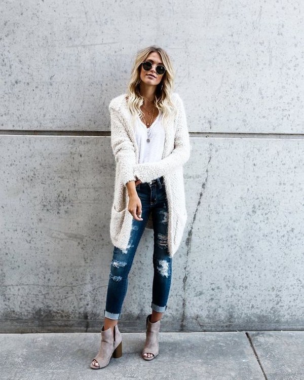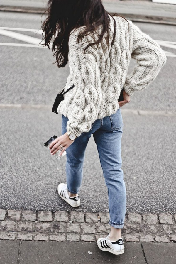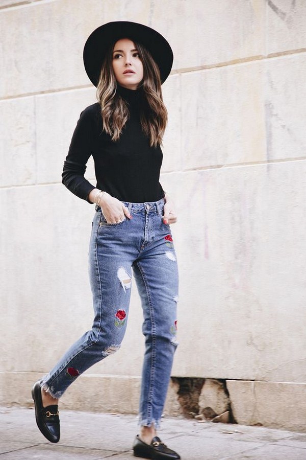 En réfléchissant à des images stylées à tout moment de l’année, vous ne pouvez évidemment pas vous passer de jeans. Jeans de mode s'intègre parfaitement dans de nombreuses images d'automne avec des blouses, chandails, manteau et vestes.