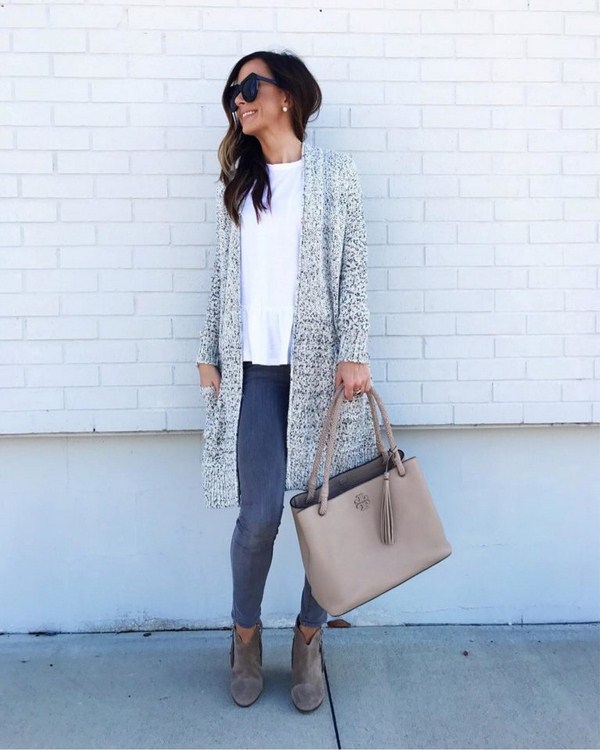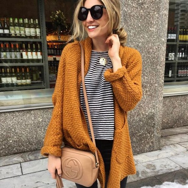 Il est possible de porter des cardigans à l’automne à la fois classiques et décontractés, en complément de l’automne familier et aimé, comme le montrent les exemples de photo.