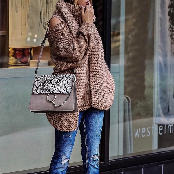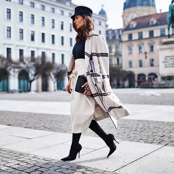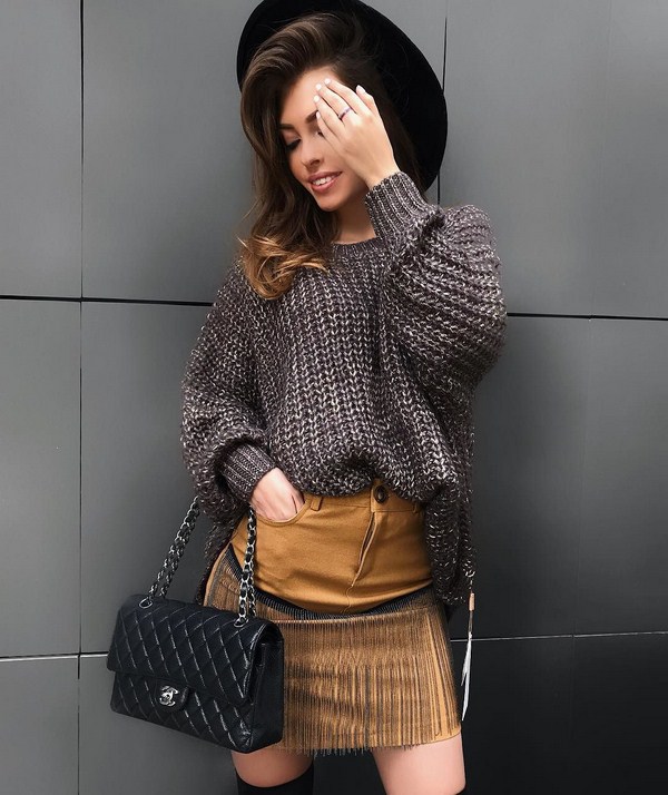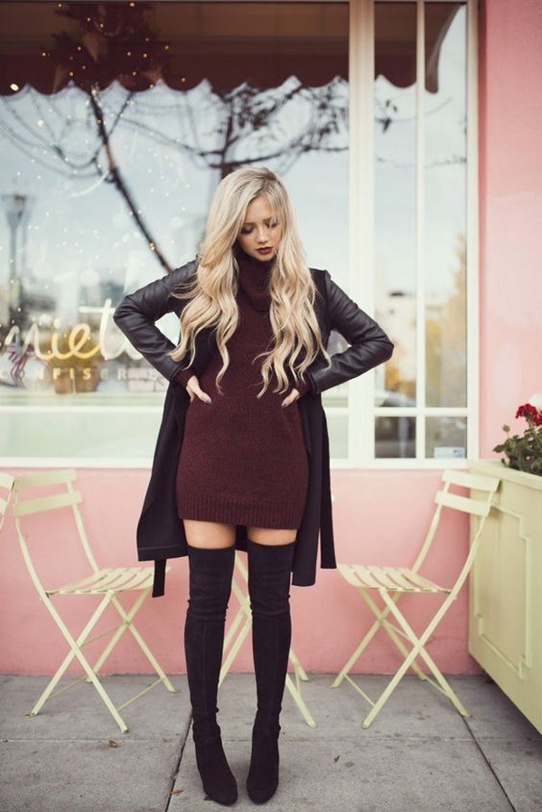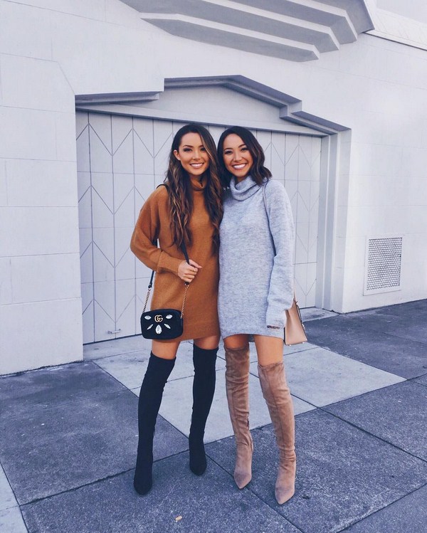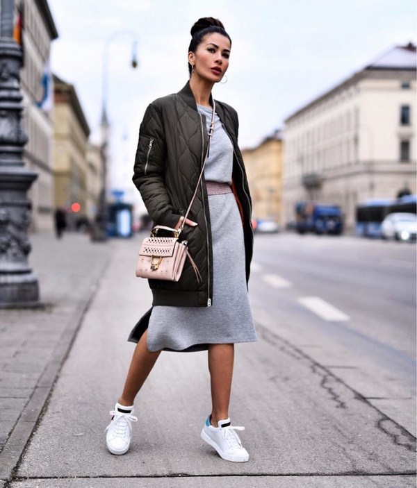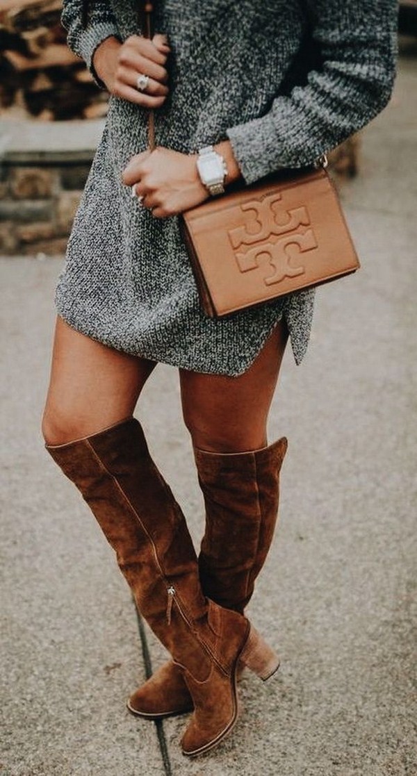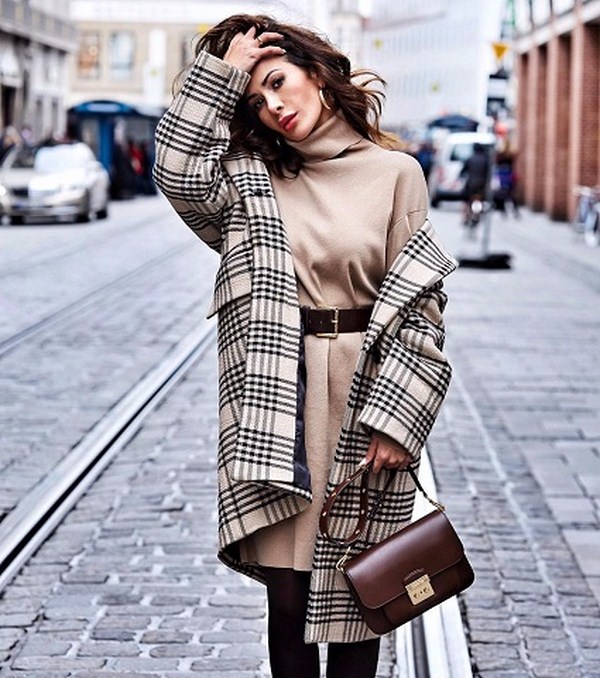 Des bandes de roulement de couleur grise, beige, marron, bordeaux et noire rendront plus efficaces les ensembles d'automne avec des robes tricotées. Vous pouvez compléter ce look avec un manteau très élégant.