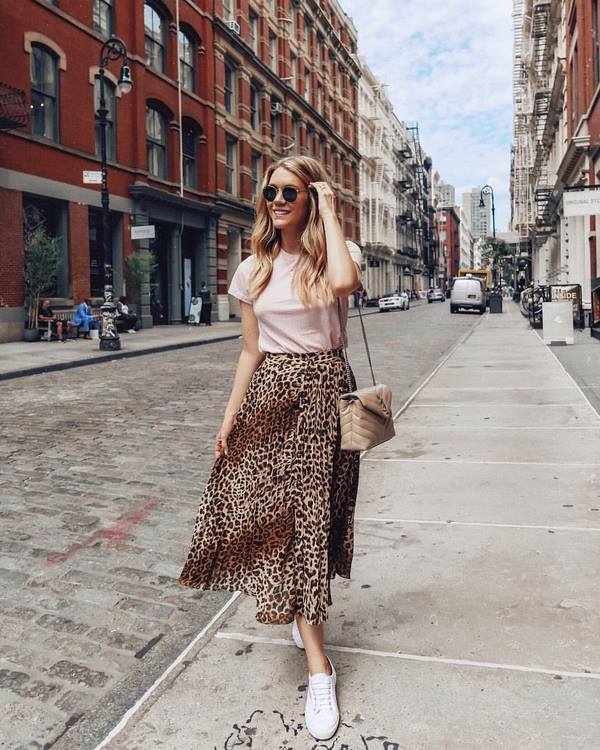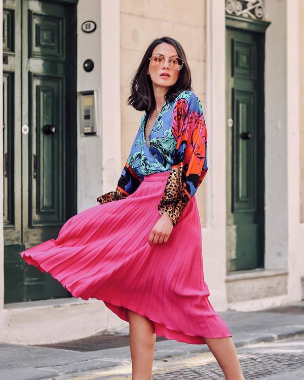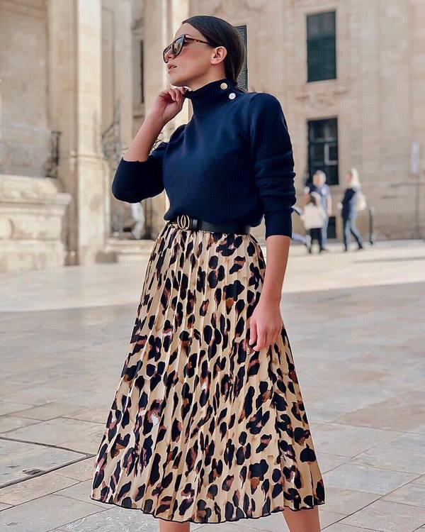 Une image audacieuse, intrigante et unique avec une jupe plissée est présentée avec un modèle imprimé dans un design prédateur. La tendance sera aux variations de la jupe plissée avec un imprimé «animal» - sous le python, le zèbre, le léopard, ce qui ajoutera de l’expression aux arcs avec une jupe plissée.