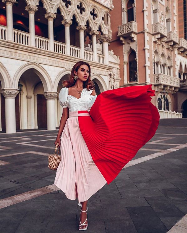 Nous proposons un look printemps-été avec une jupe plissée tendance de couleur vive. Choisissez de beaux modèles de jupes plissées en rouge, orange, citron, fuchsia, mises en œuvre à la fois en version monochrome et en couleurs combinées. Sous cette forme avec une jupe plissée brillante, vous serez hors compétition.