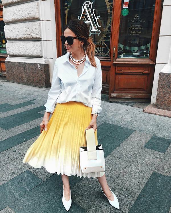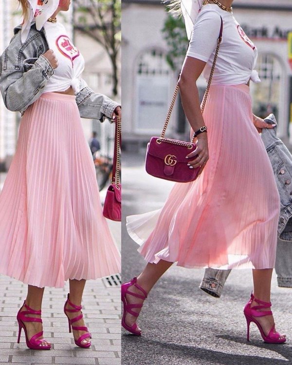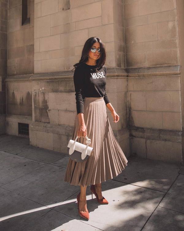 Au cours des saisons précédentes, les plus populaires étaient les jupes plissées mi-longues à la mode, présentées dans différentes largeurs de plis et couleurs. Aujourd'hui, vous pouvez trouver un ensemble insensé d'idées de jupes plissées à la longueur du genou, ainsi que des jupes longues.