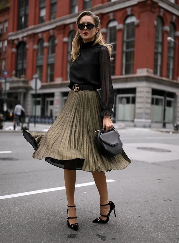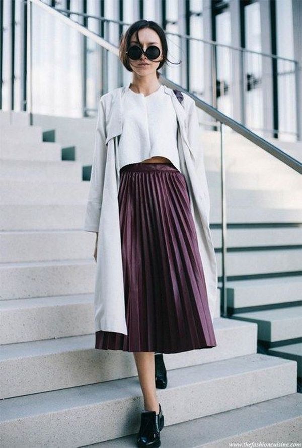 Une jupe plissée créera un look chic, et cela ne fait aucun doute. Ainsi, les fashionistas sont prêtes à porter des jupes plissées toute l’année en les combinant avec des chaussures et des sandales, des bottes hautes et des bottes baskets à la mode.