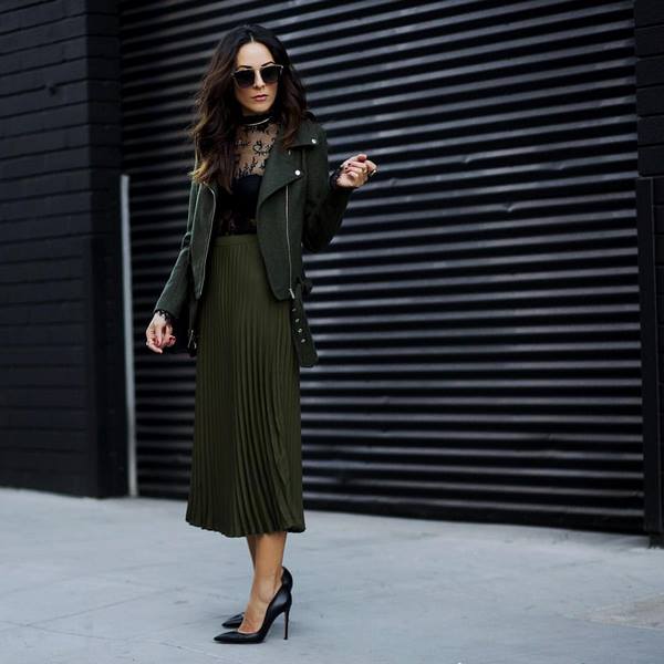 Pour la saison automne-hiver, privilégiez les jupes plissées aux couleurs calmes, riches et profondes - émeraude, marsala, bordeaux, vin, violet, bleu foncé, brun, bronze.