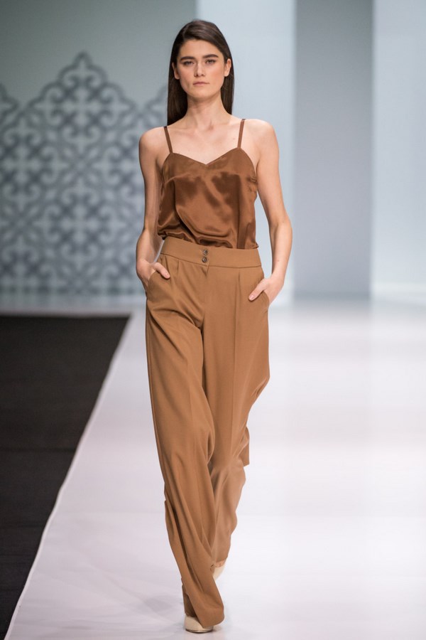 Les concepteurs ont réalisé le palais dans différentes couleurs - couleurs pastel, intriguant de couleurs vives à calmes et sombres. Pour compléter les arcs avec un pantalon Palazzo, il est préférable de porter des hauts ajustés.