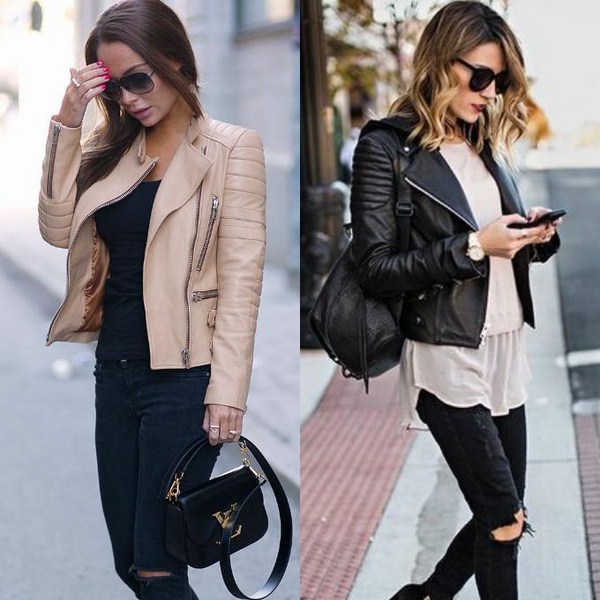 En plus des modèles noirs habituels, vous pouvez choisir en toute sécurité des vestes en cuir dans des couleurs vives - jaune, rouge, bleu, tendances cette saison.